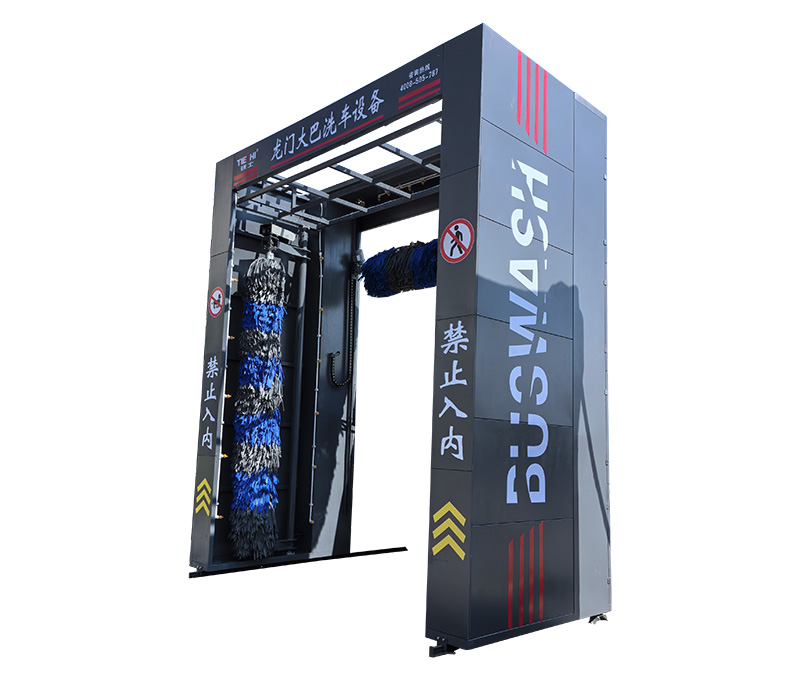 鐵士大型移動式洗車機,適用于清洗大型客車外表面的灰塵、油污及其它污漬。通過水、清洗劑及清洗刷的作用自動清洗車輛的車頭、兩側、車尾及車頂,洗車機由移動式刷洗系統、電控系統、水供給系統、洗滌劑供給系統等組成,并可配置污水循環處理系統。當車輛至清洗區指定位置停止后,洗車機在行走軌道上運動,自動進行洗滌劑噴灑,車頭、兩側、車尾及車頂的刷洗和沖洗工作,清洗后車體外表面無灰塵、泥土和其它附著物。
